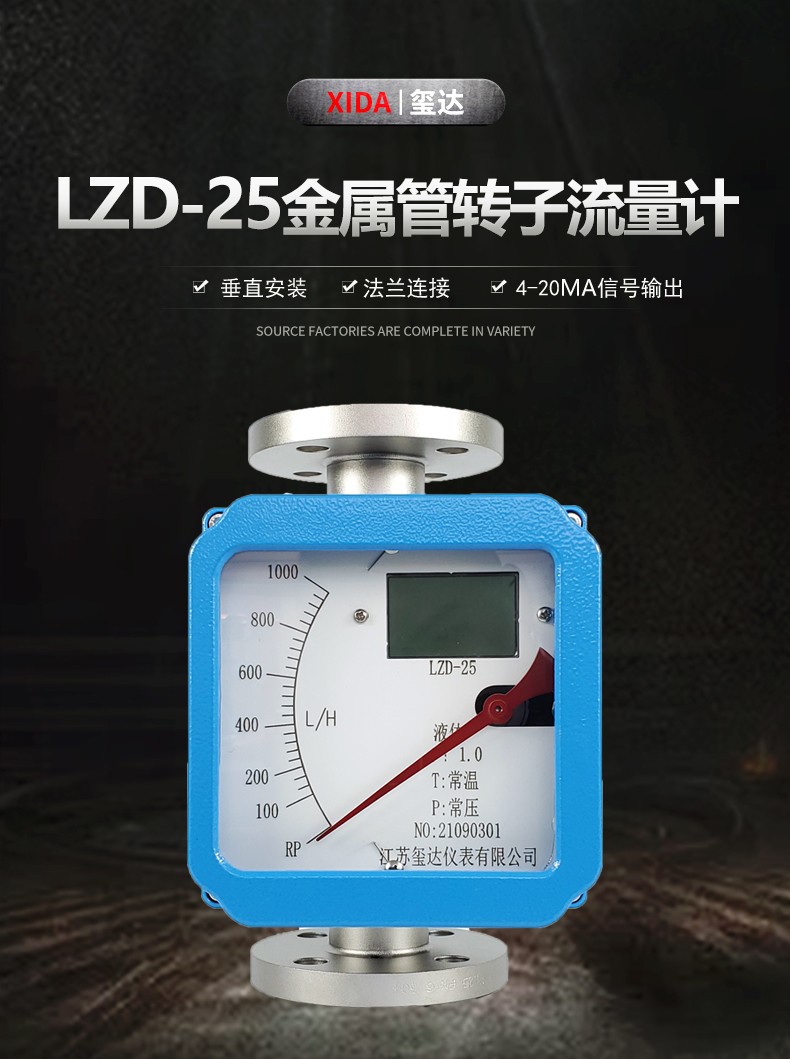 LZD-25金屬管轉子流量計(金屬管浮子流量計)是工業自動化過程控制中常用的一種變面積流量測量儀表。它具有體積小,檢測范圍大,使用方便等特點,可用來測量液體、氣體以及蒸汽的流量,特別適宜低流速小流量的測量。