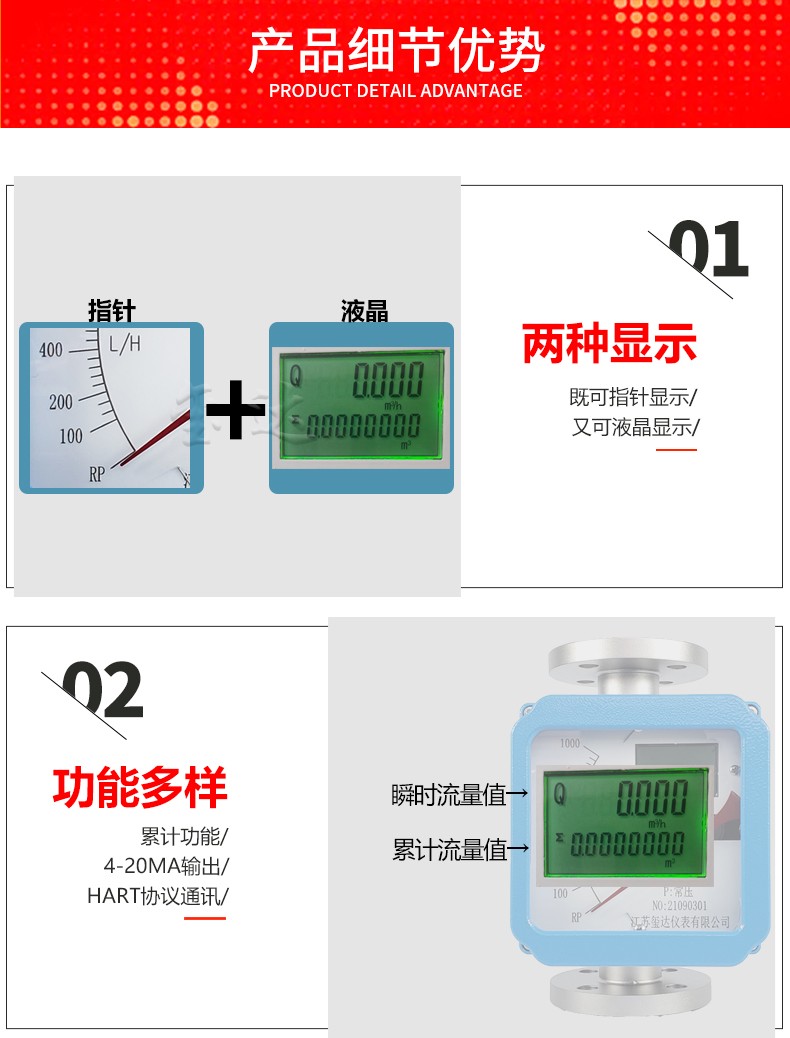 ◆ 雙行液晶顯示,現場瞬時/累積流量顯示 ◆ 指示器上有鍵盤,操作設置方便