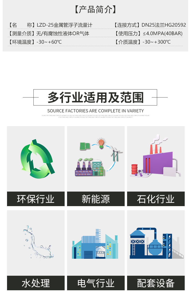 金屬管浮子流量計以其優良性能和可靠性,性價比,在石化、鋼鐵、電力、 冶金、輕工、食品、制藥、水處理等行業得到了廣泛的應用。